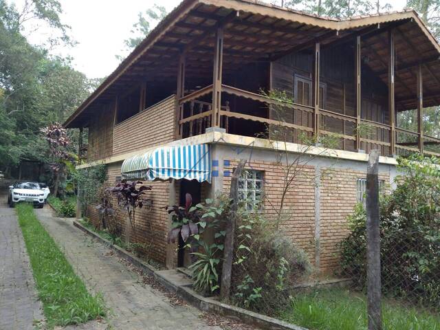 Casa na Serra da Cantareira, terreno com 900m², área construída com 244m², possuindo 5 dormitórios, sendo uma suíte, 3 banheiros, 2 cozinhas, uma em cada piso, 2 salas, sendo uma no piso superior e outra no inferior, garagem para dois carros, churrasqueira com forno e fogão à lenha e canil.
